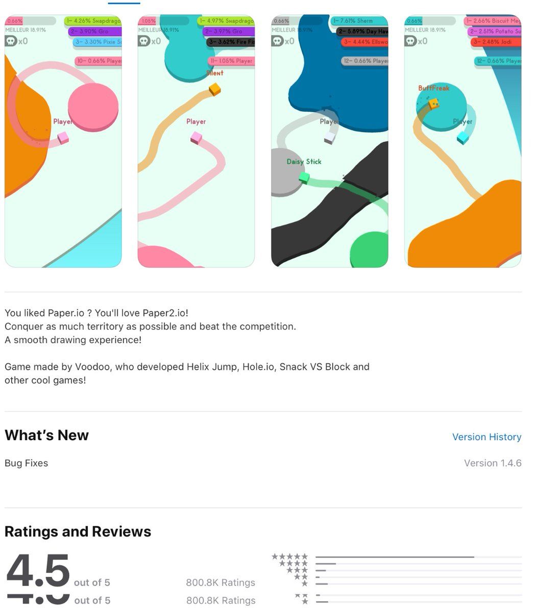 Good reviews, simple mechanics, nice colors. "Beat the competition", nice, a iOS version of paper-io.com? No but more on that later. The first thing you see is a consent screen with a dark pattern. No Agree / Decline? You can decline by clicking "Start Playing" 3/n