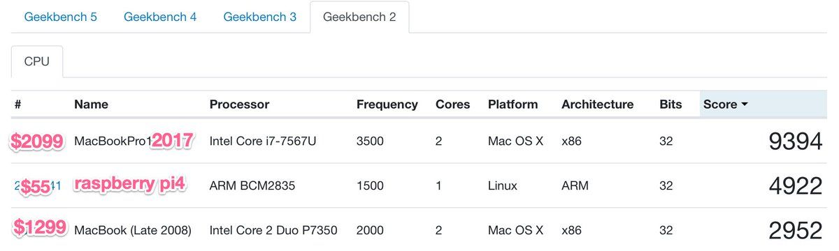 Wow, my Raspberry Pi 4 has almost ~2x the raw speed* of my 2008 Alu Macbook, that little chip is a beast, and my current one is 3x that.