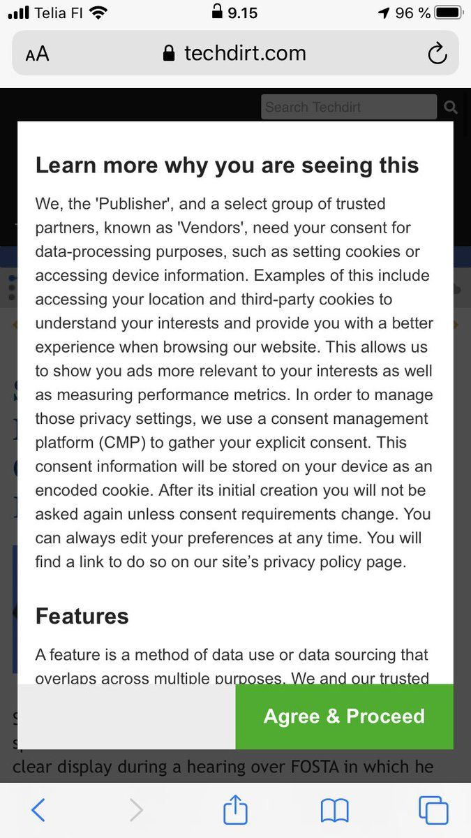 A nice hack I use. When browsing sites which has annoying (and invalid but that’s another story) GDPR consent forms, I just open the page in a browser with JavaScript disabled (I’ve found Brave on iOS to work well for this) and presto, no consent popup! #noscript