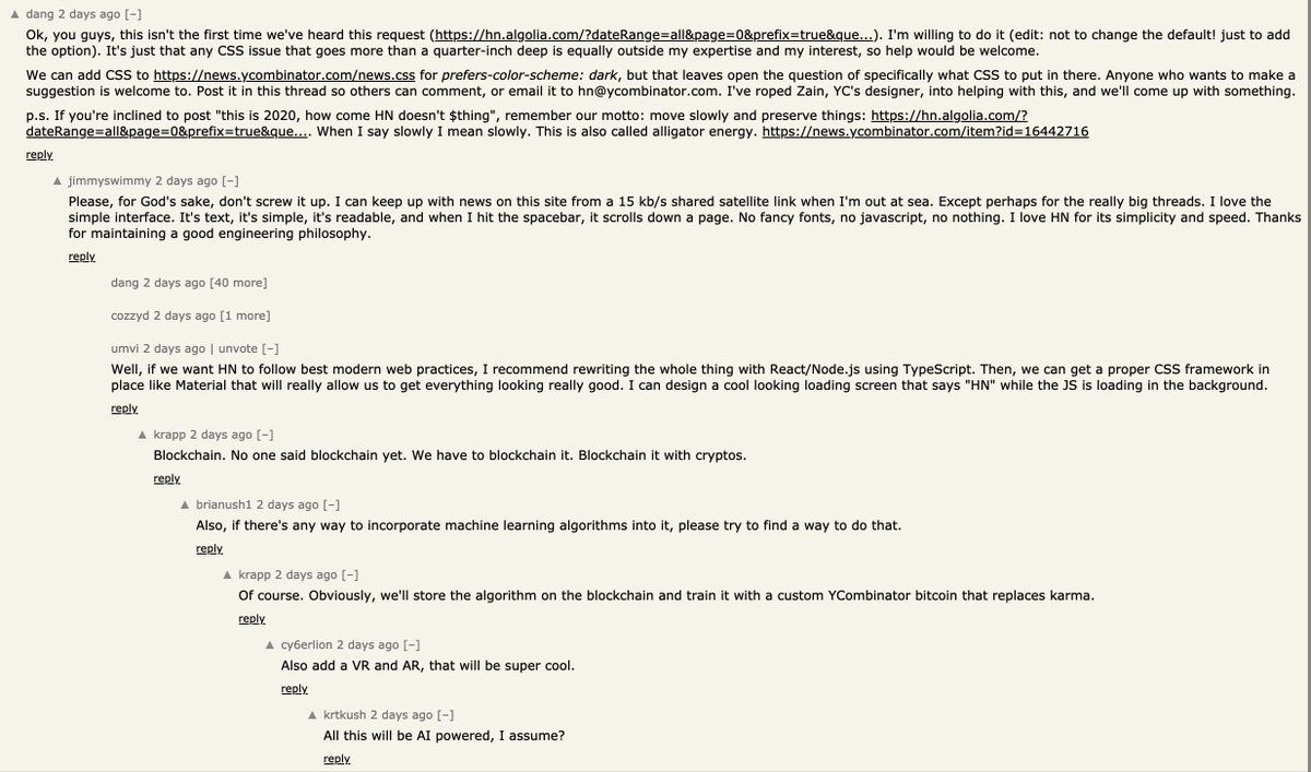 HN comments are gold sometimes, luckily they leave the gilding to reddit most of the time, which is why they stand out when they happen :-) news.ycombinator.com/item?id=23199648
