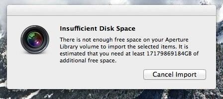 Aperture thinks I need to get a bit more diskspace :-) Maybe in the year #2040