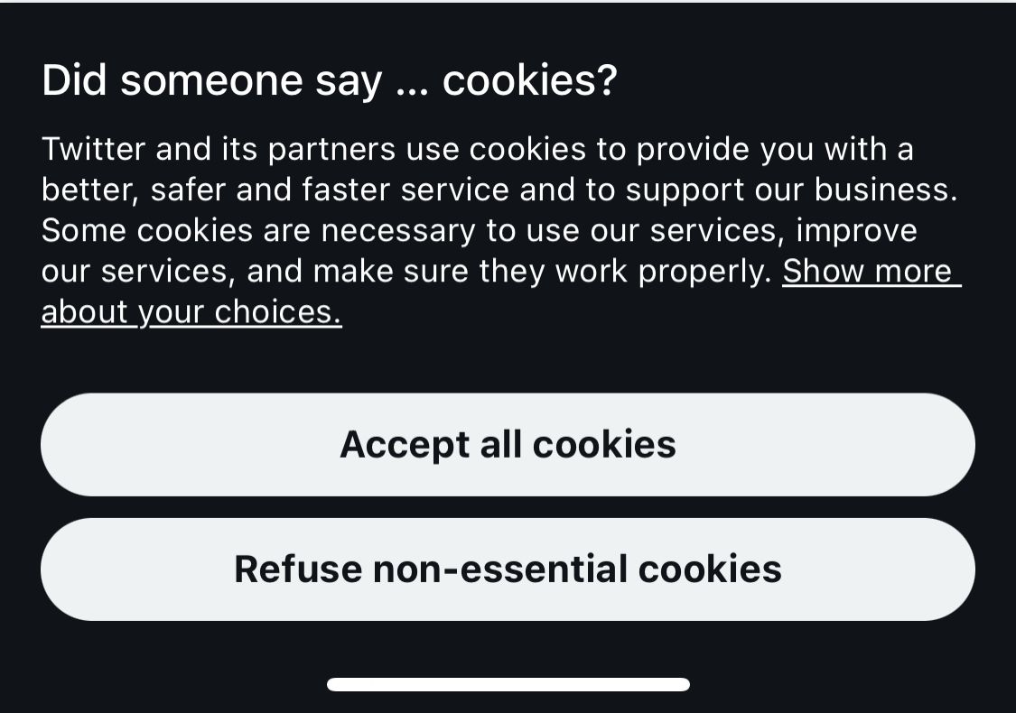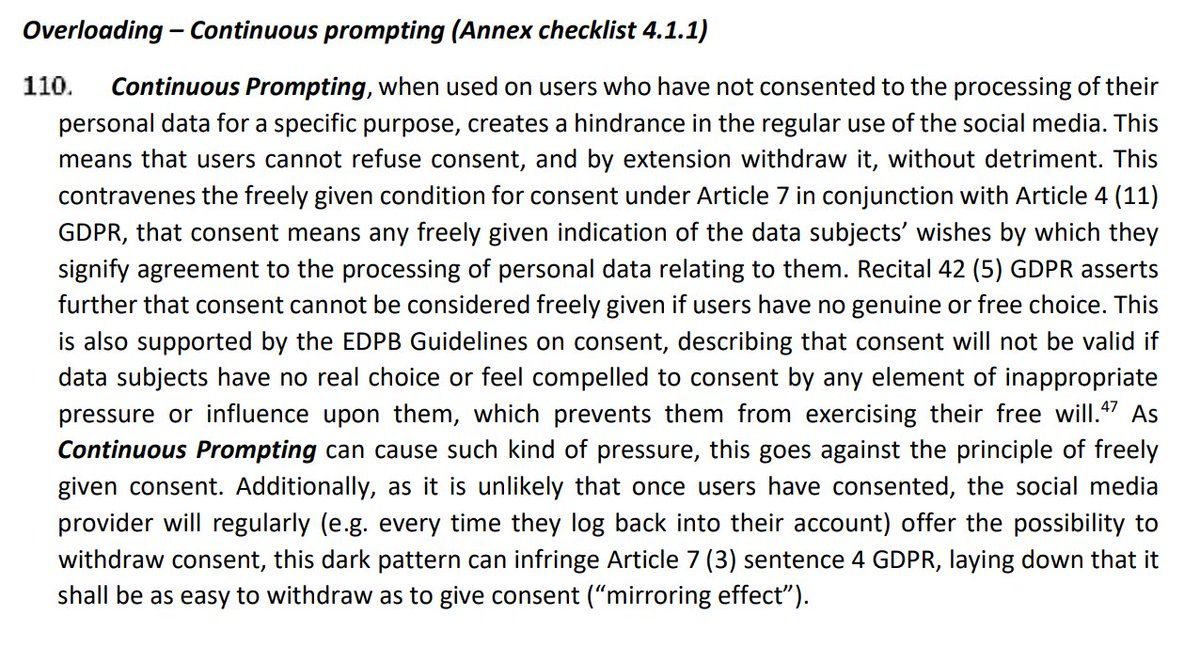 New publication from @EU_EDPB, great to see them calling out behaviour like "Continuous Prompting" edpb.europa.eu/our-work-tools/documents/public-consultations/2022/guidelines-32022-dark-patterns-social-media_en You need to look no further than at the bottom of your screen for a perfect example of it from @Twitter I have refused this N times already.. #GDPR